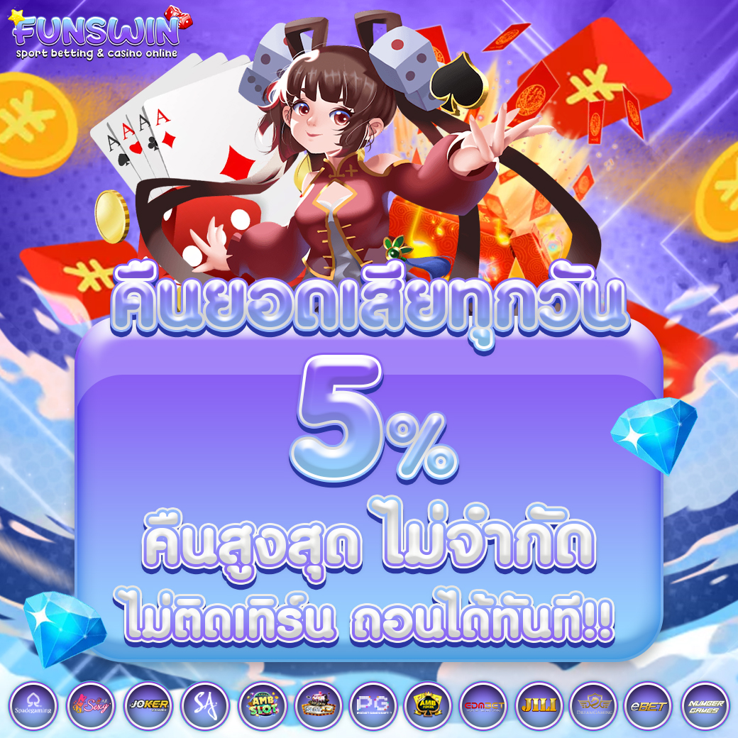 คืนยอดเสีย 5% จะมีการคืนยอดเสียให้กับทางลูกค้าทุกวันอาทิตย์